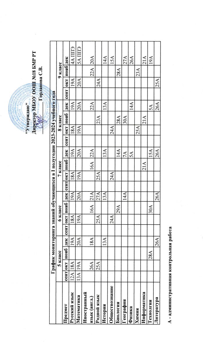 График оценочных процедур МБОУ ООШ №18 БМР РТ на 2023-2024 учебный год (уровень НОО и ООО)