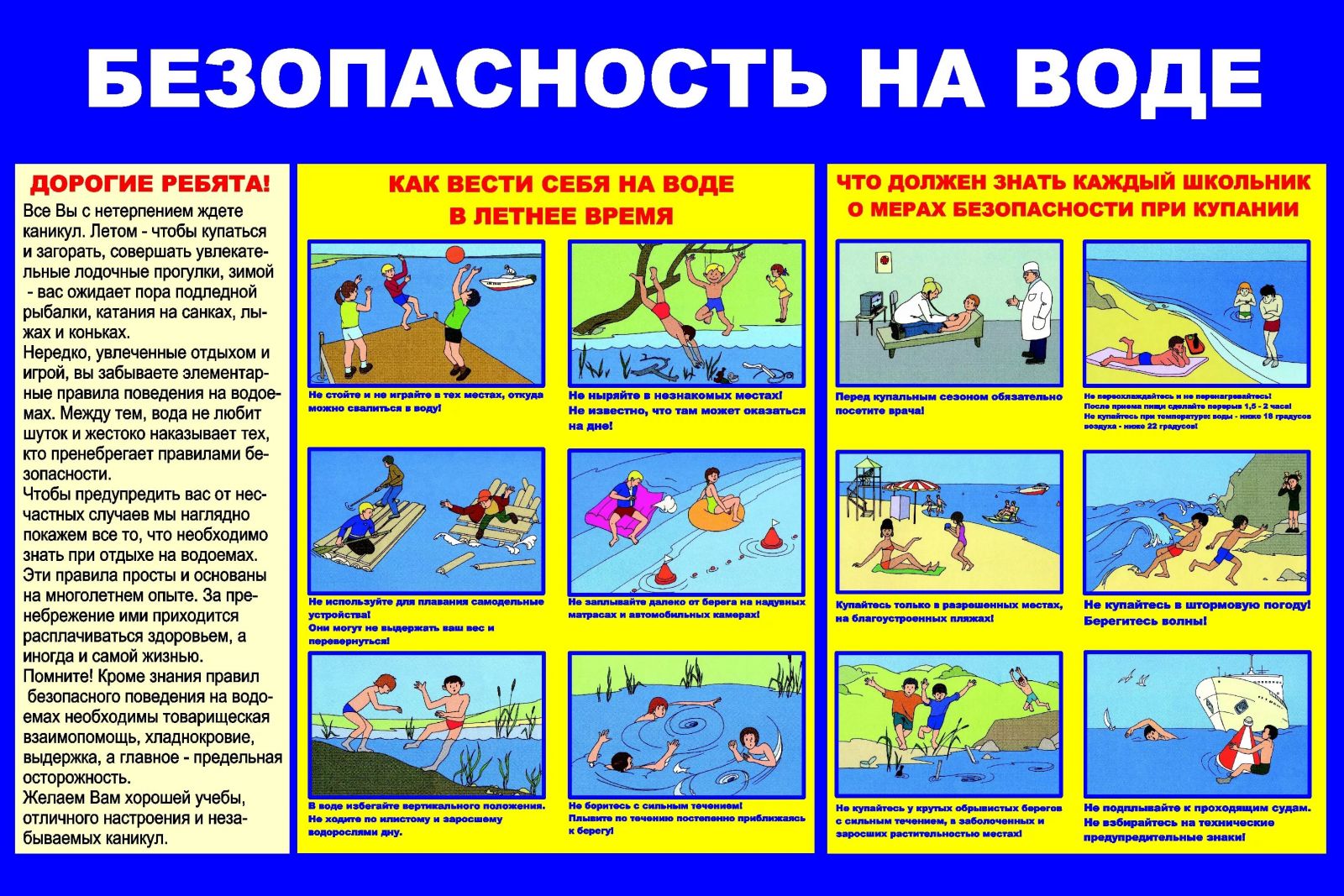 При купании в естественном водоёме не заплывать за установленные знаки ограждения, не подплывать близко к моторным лодкам и прочим плавательным средствам.