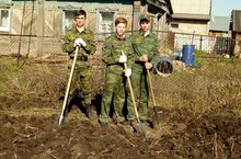 Волонтёры Победы вместе с офицером воспитателем Хайруловым Р.Р. помогли ветерану Великой Отечественной войны Абунаеву Х.Г. вскопать огород.