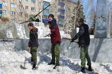 Мы чистим мир! Под таким лозунгом прошла уборка юнармейцами снега у памятника 352-й стрелковой дивизии.