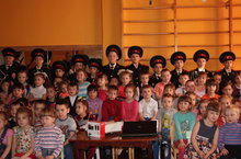 Ребята подготовили праздничную программу для детей, где рассказали в стихах и песнях, как они учатся в Кадетской школе, показали сборку-разборку оружия и сделали памятные фото с ребятами детских садов № 9 и №37.