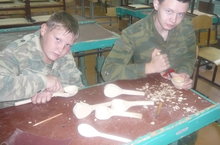 Продукция декоративно-прикладного творчества, изготавливается на кружке «Резьба по дереву» (рук. Хайруллов Р.Р.) и расписывается в народном стиле на кружке «роспись по дереву» (рук. СергееваГ.П.). Сегодня полным ходом идет изготовление новых изделий к предстоящей выставке в Столице.