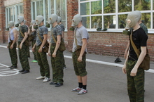 В первой половине дня по тревоге «Пожар» школа эвакуировалась на плац. Во второй половине дня прошли соревнования:
