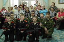 Накануне Дня Защитника отечества кадеты посетили реабилитационный центр «Радуга». В литературно-музыкальной композиции они рассказали о том, как кадеты становятся защитниками Родины, исполнили песни военных лет и современные патриотические песни. Ветераны не остались равнодушны к выступлению ребят, многие еле сдерживали набежавшую слезу, то-ли от того, что вспомнили юность, то-ли от гордости за то, что им растёт достойная смена…