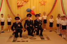 Кажется, совсем недавно эти мальчишки ходили в детский сад. А сегодня в кадетской форме стоят перед восторженными малышами. Подтянутые и строгие, в форме и с автоматами. Читают стихи о кадетской жизни и поют патриотические песни, показывают приёмы рукопашного боя. А после выступления можно дотронуться до оружия и сфотографироваться с героями дня. Наверняка многие мальчишки детсада №36, под впечатлением этой встречи, когда чуть-чуть подрастут, придут учиться в кадетскую школу.