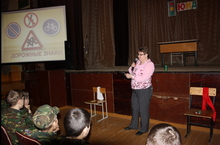 19 апреля кадеты имели возможность повторить правила дорожного движения, посмотрев «Сказочку про правила» и став участниками викторины «Дорожные знаки», подготовленные отрядом ЮИД «ДРУЗЬЯ ДОРОЖНОГО ДВИЖЕНИЯ» кадетской школы-интерната. В гостях у кадетов побывала Гибадуллина Г.М . Она еще раз напомнила о том, как вести себя на дороге во избежание ДТП, а победителям викторины подарила памятные призы.