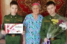 Волонтёры победы 6 класса поздравили с Международным женским днём вдову участника Великой Отечественной войны, кавалера Ордена Красной звезды А.М. Галлямова.