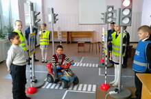 В школе оборудован кабинет ПДД. Первыми гостями стали дошкольники из детских садов №39, №38 и №23. Школьная агитбригада подготовила для дошколят выступление, напомнили правила перехода улицы и закрепилии эти правила на практике.