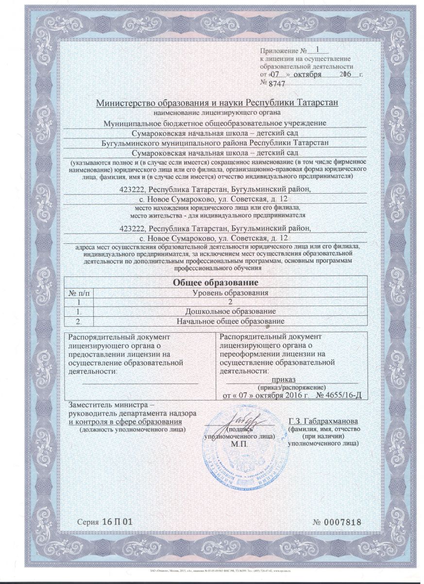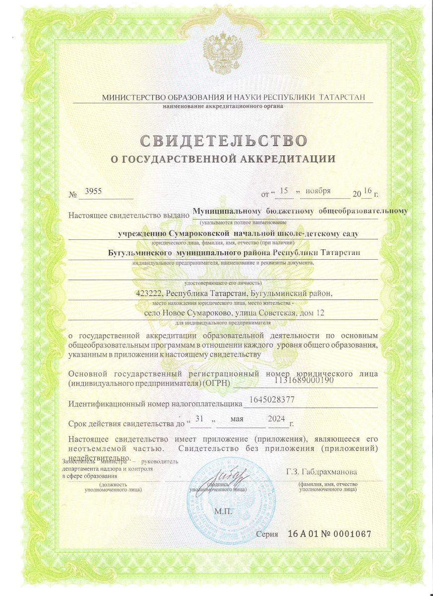 Муниципальное бюджетное общеобразовательное учреждение Сумароковская начальная школа-детский сад Бугульминского муниципального района Республики Татарстан/ Татарстан Республикасы Бөгелмә муниципаль районы гомуми белем бирүче муниципаль бюджет учреждениесе Сумароково башлангыч мәктәп- балалар бакчасы
