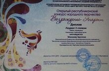 Дипломом лауреата 2 степени награждена Минязова Кристина, ученица 5 класса, которая приняла участие в республиканском конкурсе народного творчества «Возрождение – Янарыш». Поздравляем!