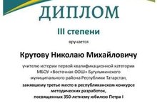 9 июня 2021 г. на онлайн площадке Института развития образования Республики Татарстан состоялось подведение итогов Республиканского конкурса методических разработок, посвященных 350-летию Петра Великого.
