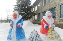 Во дворе школы учащиеся под руководством учителя технологии построили снежный городок.
