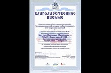 "Ассоциация учителей истории и обществознания", Сеть творческих учителей и Научно-исследовательский центр ЭОН выражает глубокую признательность директору школы, за активное участие в исследовании процессов совершенствования преподавания в школе истории России.