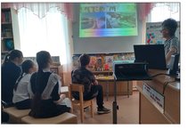 Сельский библиотекарь пригласила учащихся 5-7 классов отправиться на виртуальном библио-такси по улицам деревни Зелёной Рощи. С помощью электронной презентации «А я люблю места родные» были представлены исторические и топонимические факты о главных и памятных местах сельчан. Рассказ сопровождался фотодокументами, взятыми из школьного краеведческого музея и книги «Память сердца», выпущенной к 100-летию образования сельского поселения.