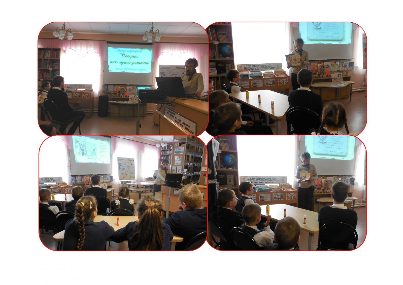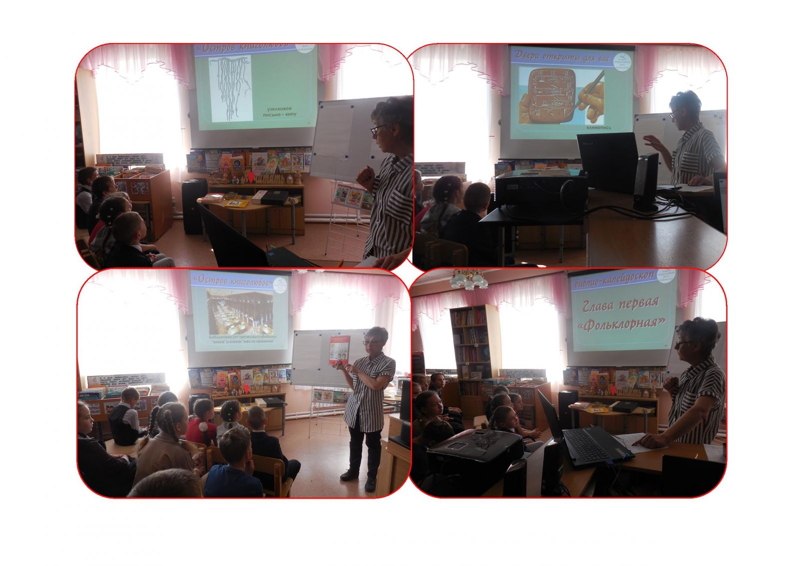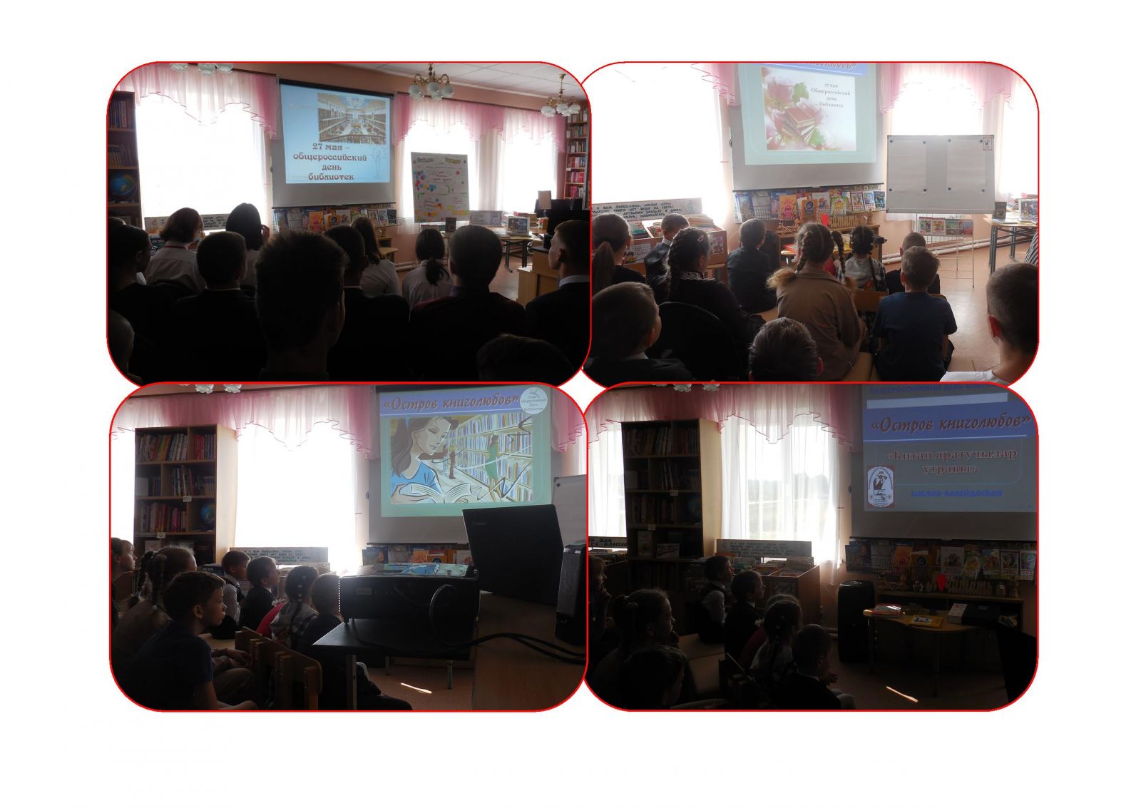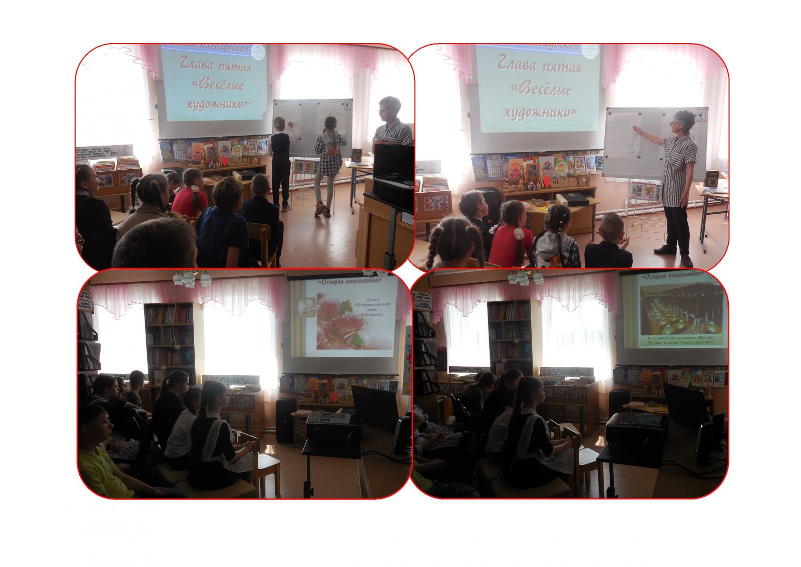 Во всероссийский день библиотек в сельской библиотеке прошел библио-калейдоскоп «Остров книголюбов», где ученики 1-9 классов совершили путешествие по страницам художественных произведений, участвовали в литературных викторинах, конкурсах рисунков сказочных героев. Библио-калейдоскоп помог ребятам вспомнить классиков и открыть для себя новых авторов современной литературы. Учащиеся и педагоги школы слушали песни о книгах и библиотеках, а благодаря экрану телевизора совершили виртуальную экскурсию по сельской библиотеке.