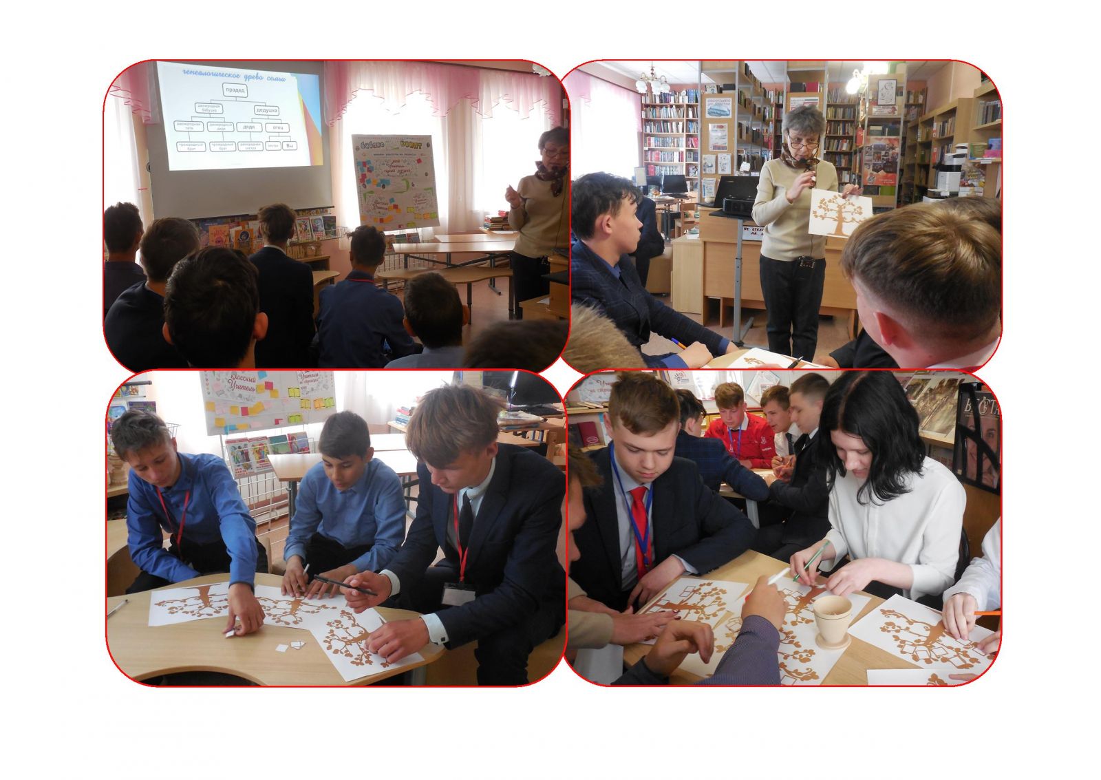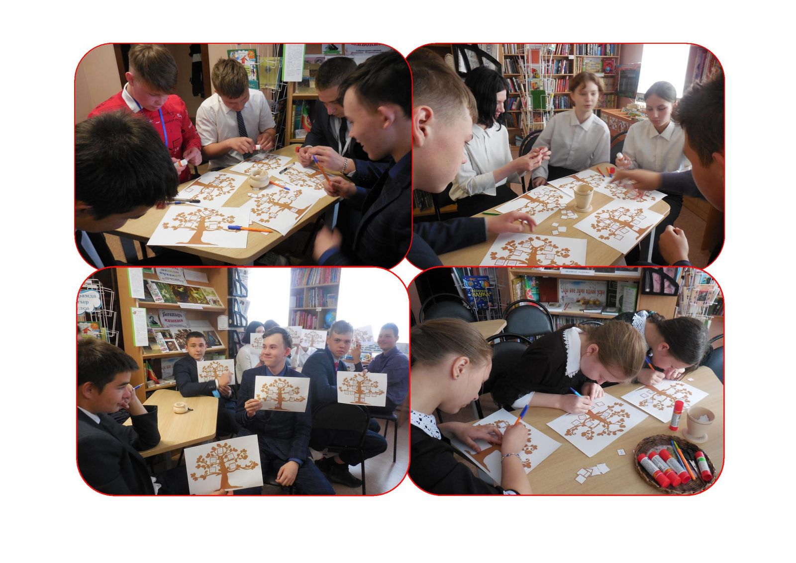 В канун Дня семьи сельский библиотекарь пригласила учащихся 7-9 классов на просмотр клип-энциклопедии «Книжки про маму, папу, дочку и сынишку», в которой представлены произведения, повествующие о семейных ценностях, традициях, понимании родных и близких людей и уважительного отношения к ним. В заключение, придя к выводу, что семья – это дом, где тепло и уютно, где тебя любят, это родные друг другу люди, которых объединяют общие интересы, ребята приняли участие в мастер-классе по составлению генеалогического семейного древа.