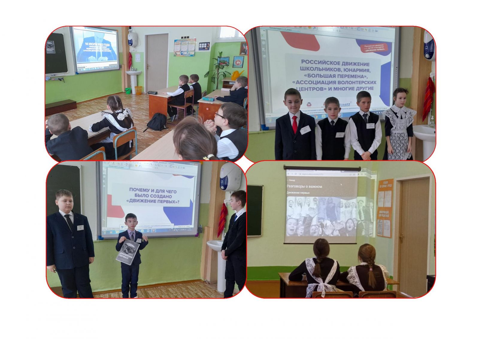 На классном часе «Разговор о важном» разговор шёло деятельности Российского движения детей и молодёжи «Движениепервых», которое создано для мотивации подрастающего поколения к общественно-полезной деятельности, проявлению активной гражданской позиции и помощи развитияРоссии.С помощью РДДМребята смогут стать по-настоящему лучшими вместе с командой вабсолютно любой сфере.