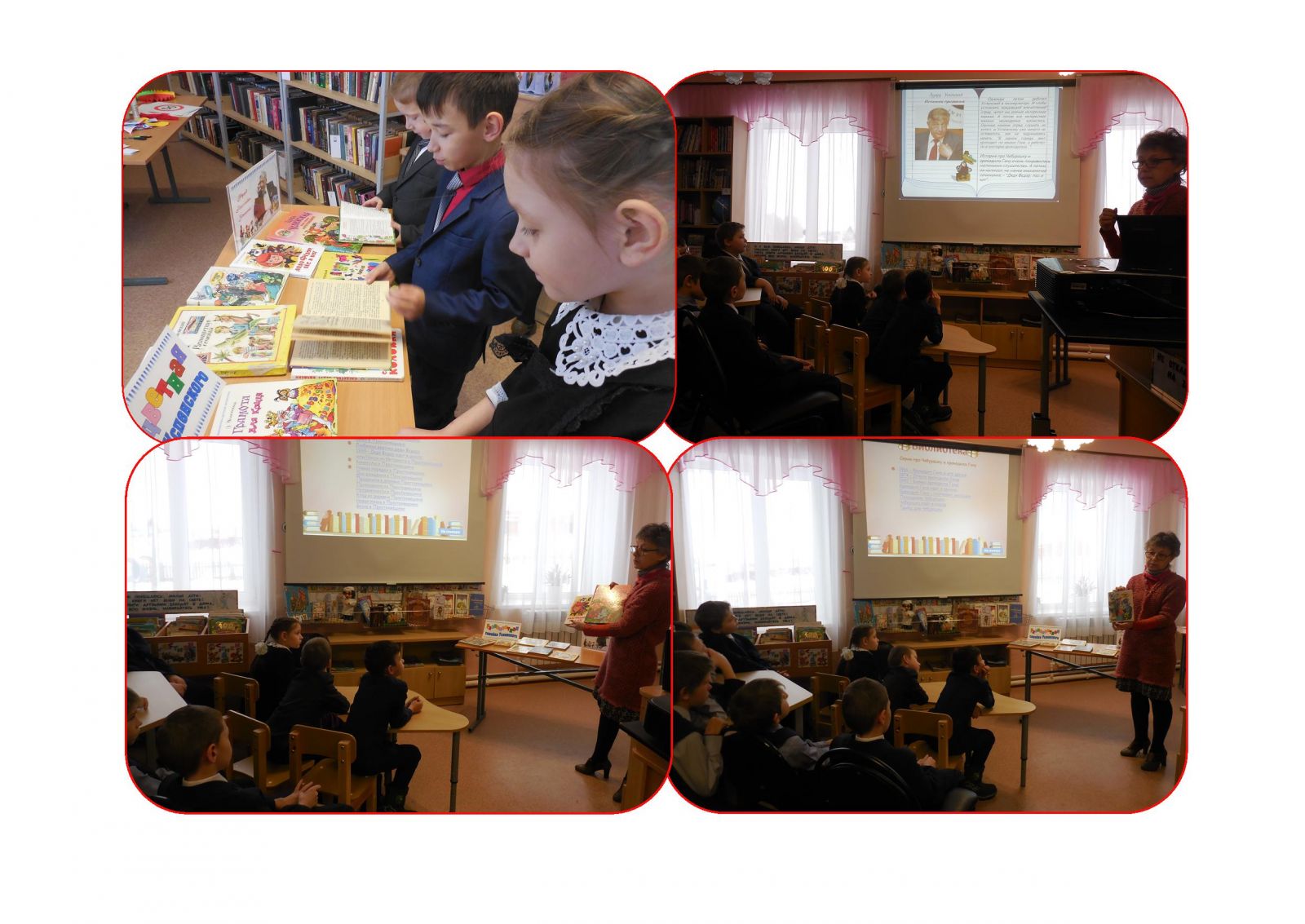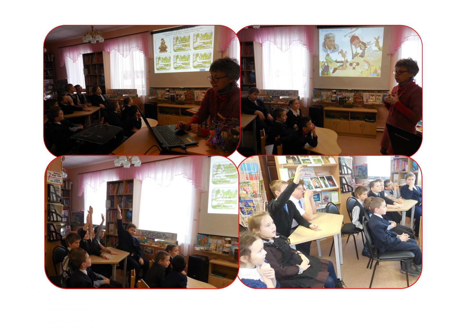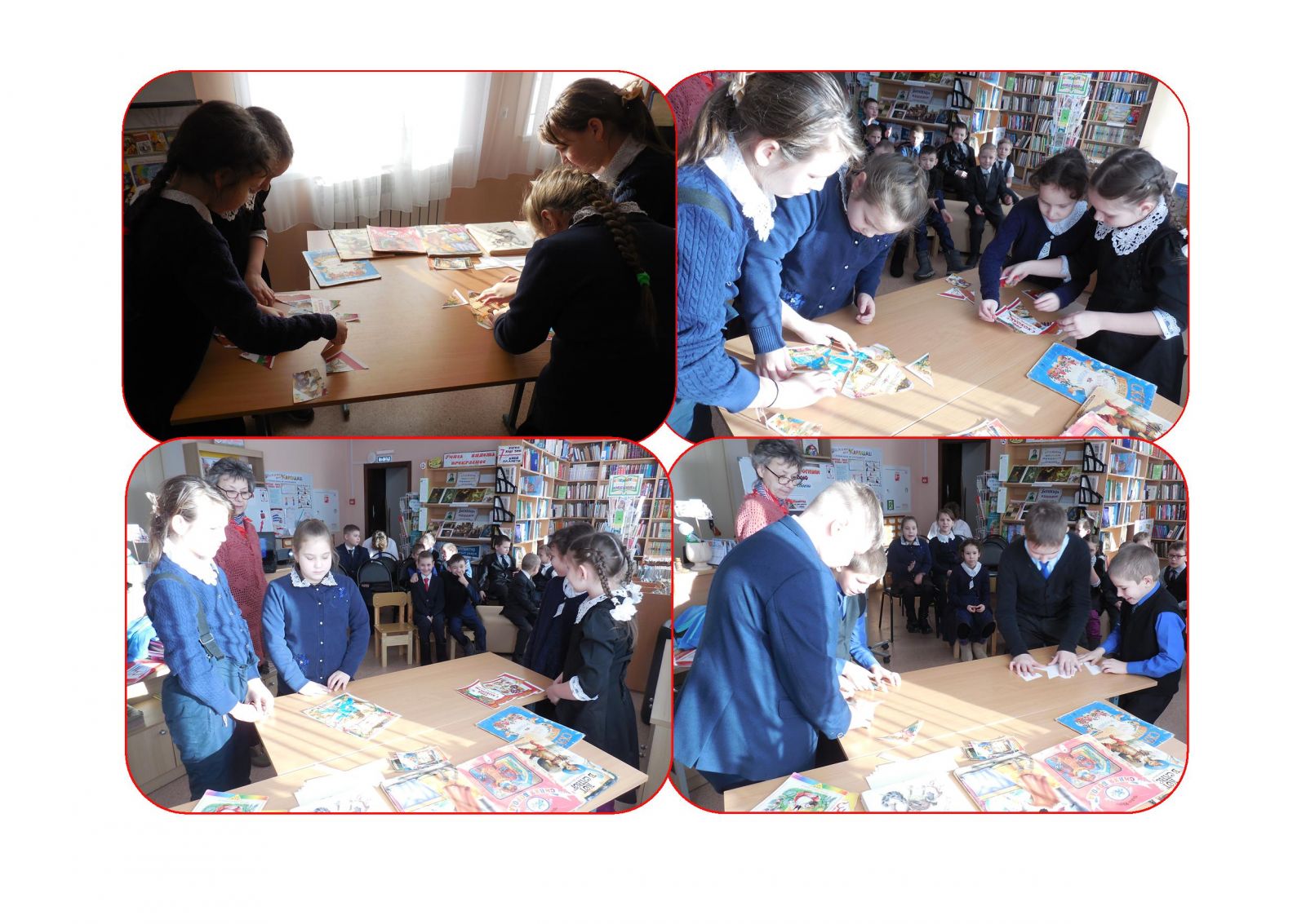Учащиеся 1-4 классов посетили сельскую библиотеку, где участвовали в литературном лото «Разноцветная семейка», посвященном юбилею писателя Эдуарда Успенского. Вначале ребята ознакомились с основными этапами жизни писателя, рассказ библиотекаря сопровождался слайдами, которые содержали познавательные, с необычайным стилем иллюстрации к книгам писателя. Затем ученики выполняли задания, связанные с героями книг Э. Успенского. В заключение ребята с большим интересом листали страницы книг писателя и смастерили ёлочные украшения, вспоминая содержание произведения «Зима в Простоквашино»