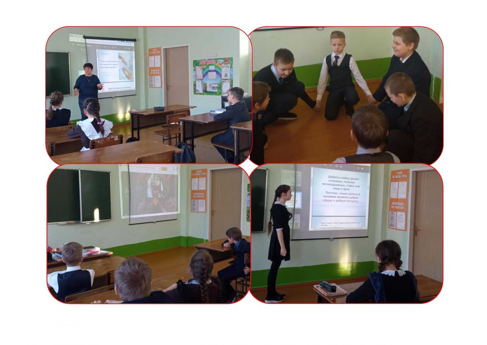 В рамках Декады инвалидов в классах школы прошли уроки доброты, целью которых было воспитание у учащихся гуманного отношения к людям с ограниченными возможностями, формирование нравственных качеств человека: забота о других, взаимовыручка, умение дружить, делать добро для других, сопереживать, сочувствовать. На мероприятиях звучали песни «Если добрый ты», «Дорогою добра», «Что такое доброта» и другие.