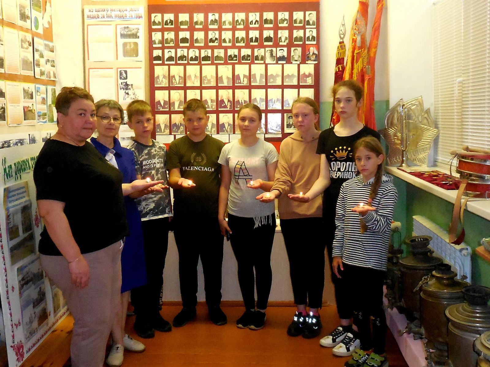 Сельский библиотекарь с учащимися школы провела исторический калейдоскоп «Память народная хранит»: знакомство с художественными произведениями писателей-фронтовиков. В заключение ребята посетили школьный краеведческий музей, зажгли свечи в память о погибших воинах-земляках. В мероприятии также приняли участие многократные победители, лауреаты различных конкурсов духовой оркестр и сводный хор гимназии Свято-Алексиевской пу́стыни (Ярославская область), которые накануне дали концерт для сельчан.