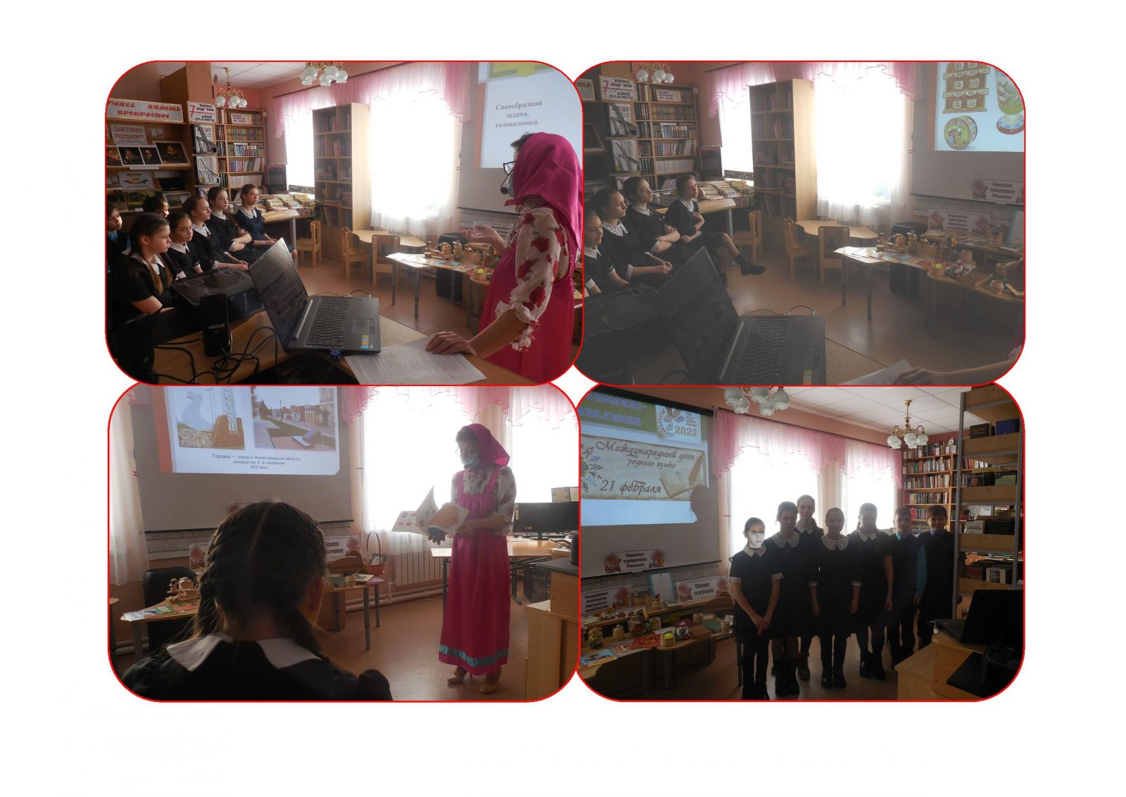 В рамках празднования Года народного искусства и нематериального культурного наследия народов России сельский библиотекарь пригласила учеников и педагогов школы на премьеру книги «Память сердца» (автор И.Ишкова), на страницах которой собран уникальный материал, охватывающий столетний период становления поселения и помогающий сохранить для потомков непрерываемую историческую нить. В заключение с большим интересом все посмотрели фильм-путешествие «Деревенька моя», снятый в форме экскурсии по улицам Зеленорощинского поселения.