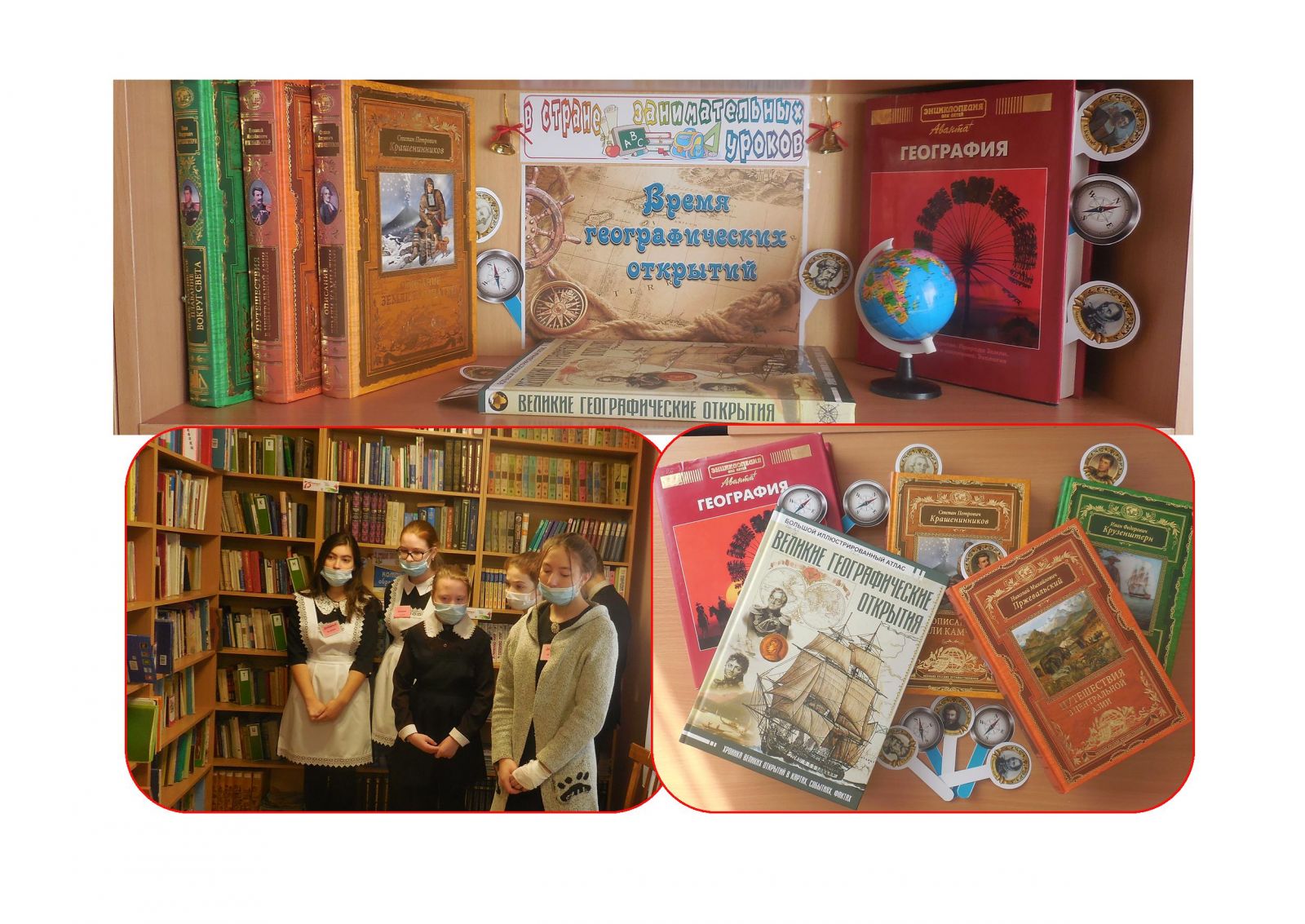 Сельский библиотекарь пригласила учеников 4-9 классовна обзор книжной выставки «В стране занимательных уроков. Время географических открытий» – «Географикачышларвакыты».Ребята ознакомились с новыми книгами, которые раскрывают необыкновенные истории о судьбах великих путешественников и землепроходцев, имена которых известны всему миру и благодаря которым были совершены крупные географические, геологические открытия. Книжные закладки в форме компасов помогают прочесть наиболее интересные статьи путевые заметки, тексты дневников известных географов, сведения о природе, посмотреть рисунки, красочные фотографии, карты и иллюстрации.