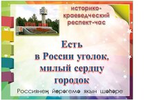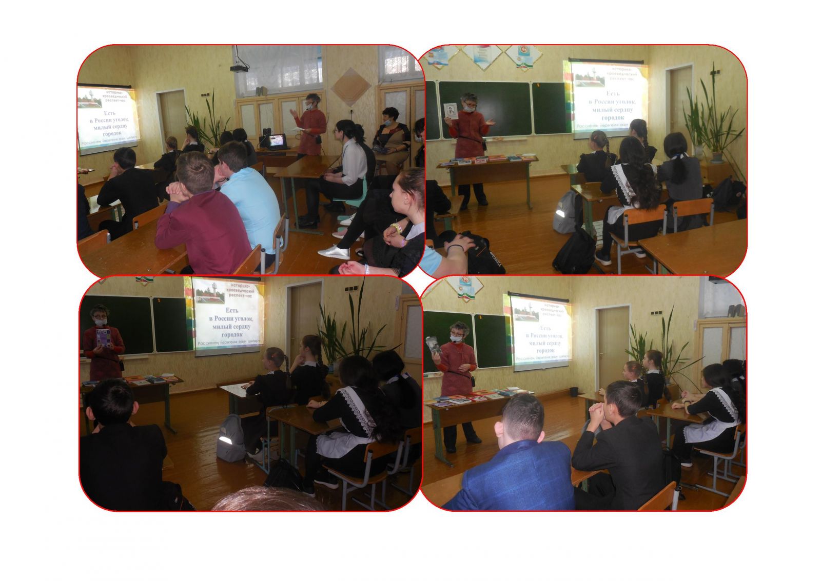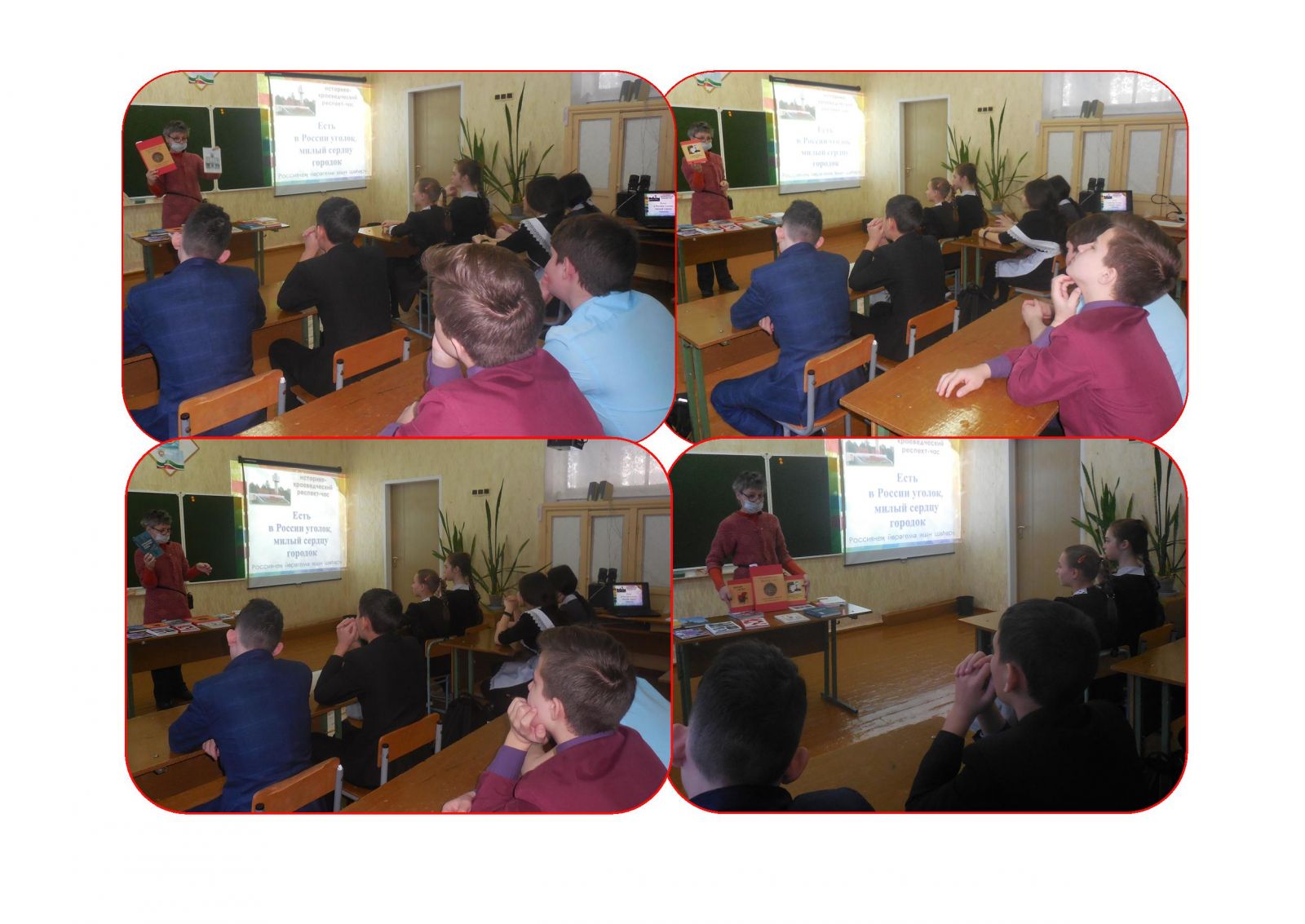 Сельский библиотекарь для учеников 5-9 классов организовала историко-краеведческий респект-час «Есть в России уголок, милый сердцу городок», где демонстрируя книги и применяя художественное чтение, музыку, рассказала о ярких исторических событиях и фактах небольшого городка Татарстана – Бугульмы и его знаменитых жителях, тем самым обогатив знания, расширив кругозор и увеличивинтерес ребятк историческому прошлому малой родины.