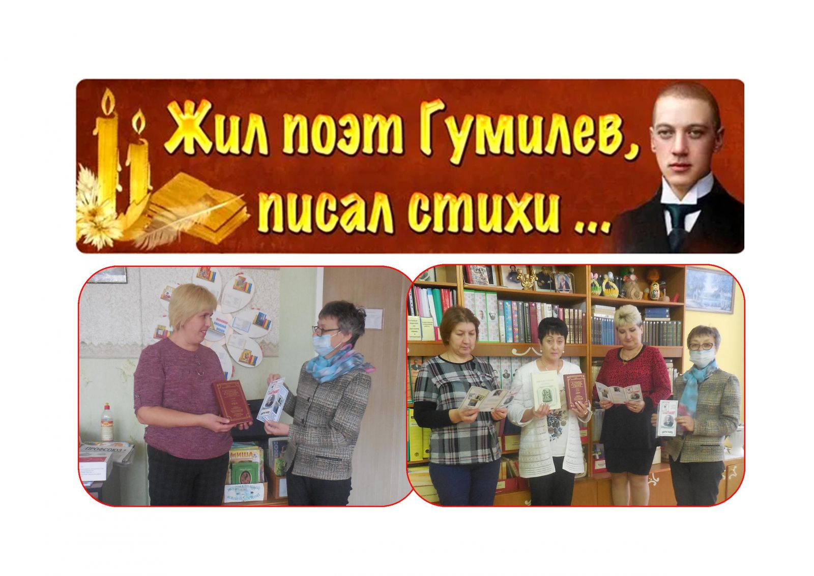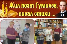 К юбилею Николая Гумилева,поэта Серебряного века,в сельской библиотеке был создан и распространен среди педагогов школы красочный буклет «Романтические цветы» с целью пропаганды лучших образцов отечественной литературы. Учителя смогли познакомиться с основными моментами биографии и творчества писателя, а также с названиями его произведений, которые могут найти в библиотечном фонде.