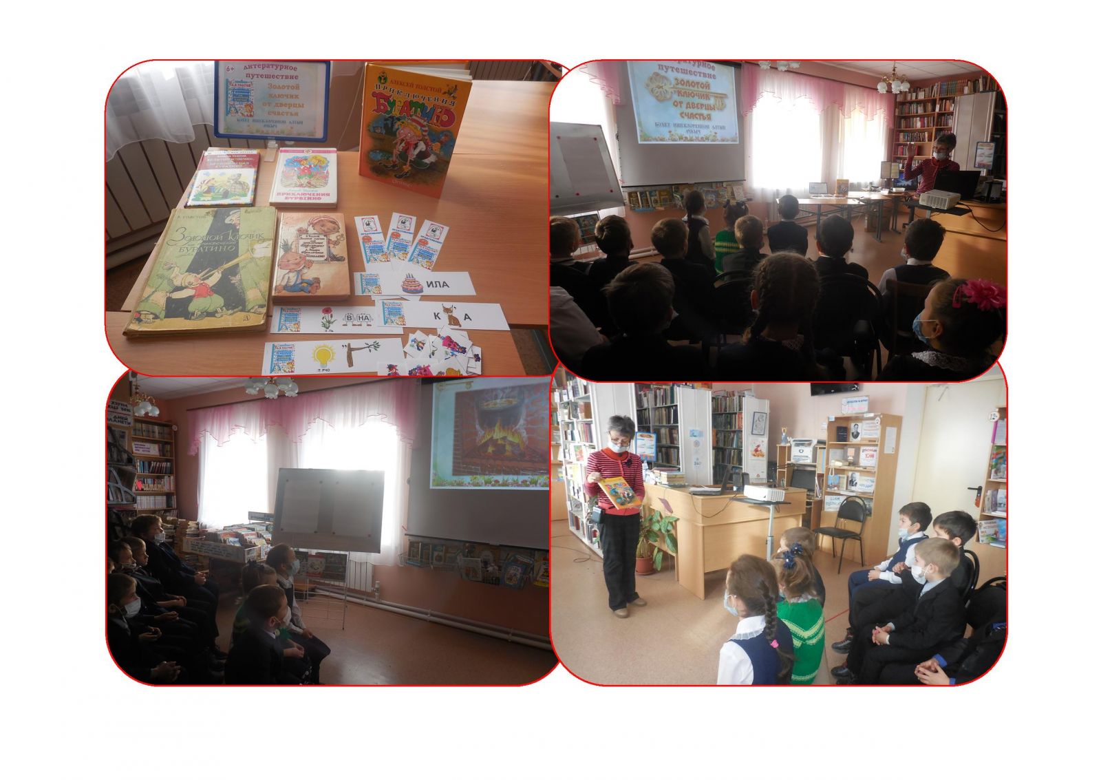 Ученики 1-4 классовбыли приглашены в Зеленорощинскую сельскую библиотеку на литературное путешествие «Золотой ключик от дверцы счастья» по страницам книги А. Толстого «Приключения Буратино». Ребята узнали интересные факты из жизни писателя, историю создания сказки, отвечали на вопросы интерактивной викторины по произведению, отгадывали кроссворд, мастерили книжные закладки, разгадав ребусы с именами героев книги. Путешествие сопровождалось демонстрацией слайдов, видеороликов и музыкальными фрагментами.