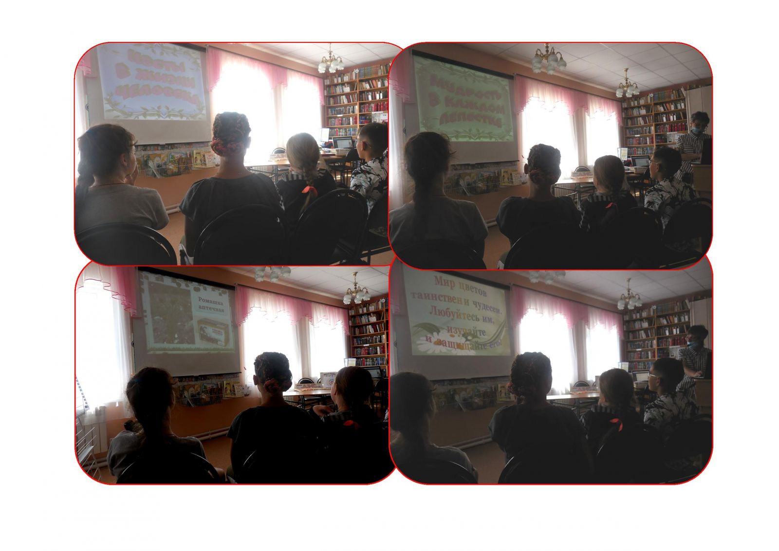 Для учеников щколы в сельской библиотеке состоялся эко-пленэр «Цветочная фантазия» с целью повышения ответственности читателей за сохранение и преумножение достопримечательностей природы, развития интереса к бережному отношению к природе. Во время эко-пленэра библиотекарь частично раскрыла книжный фонд, рассказывающий о красоте окружающего мира и бережном отношении к природе. Затем ребята нарисовали эскизы цветочных клумб и рабаток, которые бы хотели видеть на приклубной территории. На протяжении мероприятия звучали стихи А.Фета, А. Пушкина, С.Есенина, В.Хамидуллиной, а также фрагменты песен Ю. Антонова «Живет повсюду красота», «Не рвите цветы».