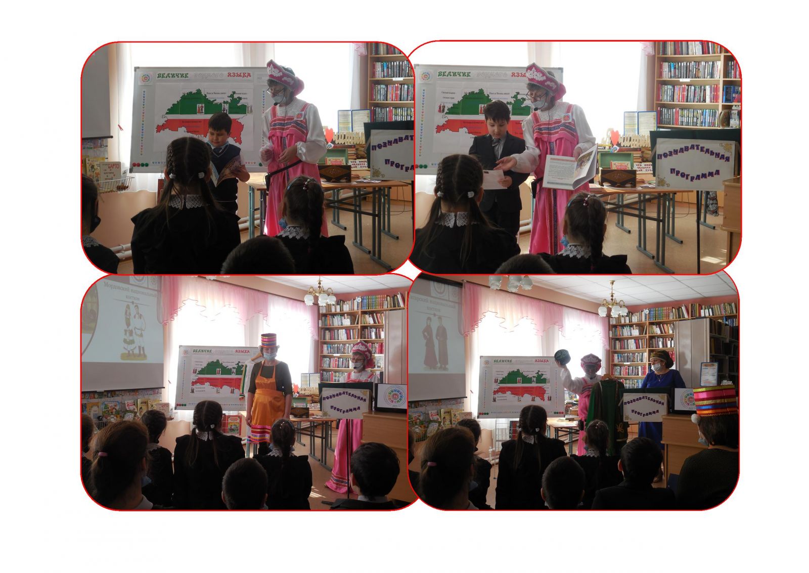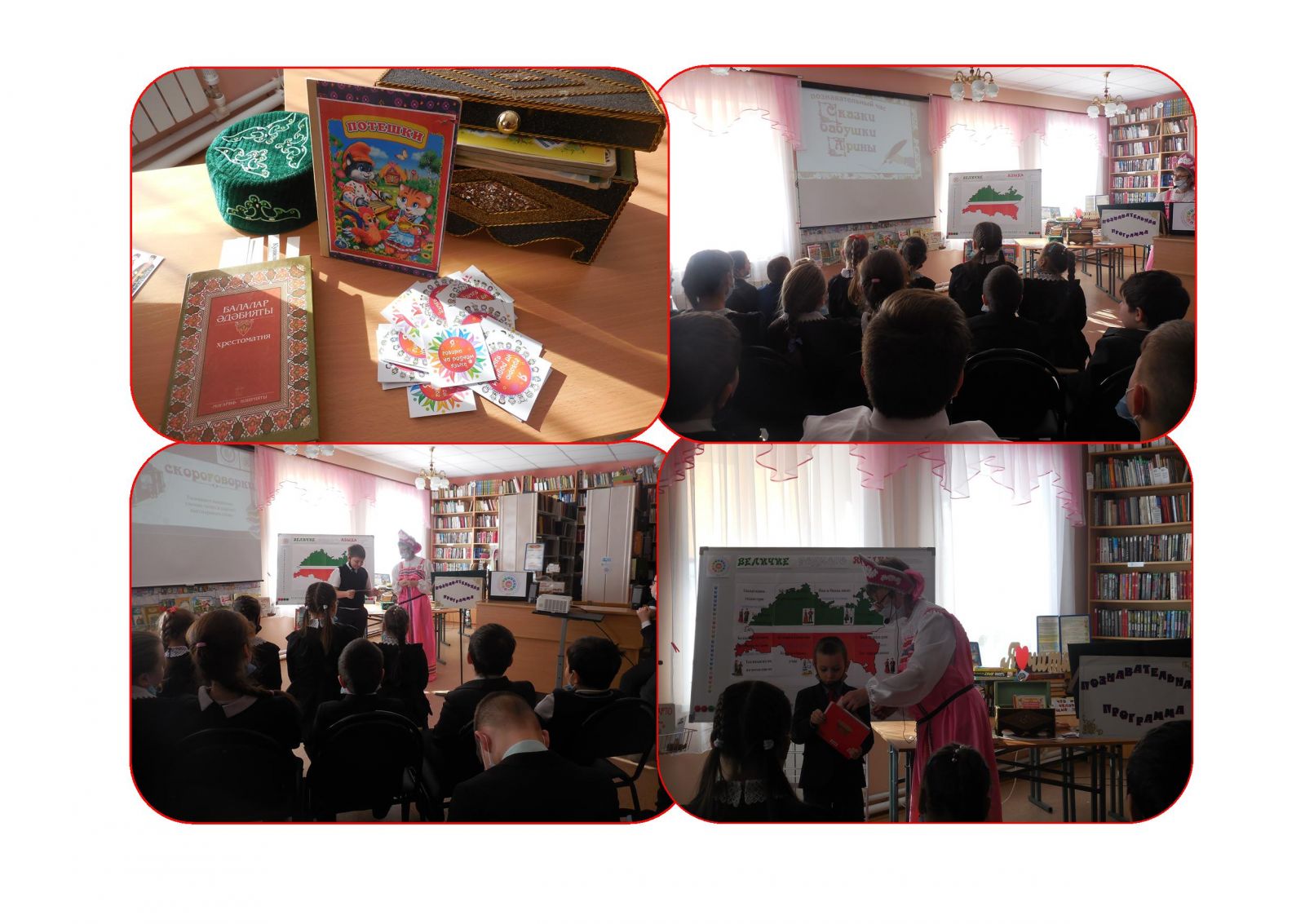 В рамках Года родных языков и народного единства в Республики Татарстан библиотекарь сельской библиотеки организовала для учеников 1-5 классов познавательный час «Сказки бабушки Арины», тем самым приняв участие в Международной акции «Наши истоки. Читаем фольклор» (организатор Ульяновская областная детская библиотека). На мероприятии разговор вёлся об устном народном творчестве народов, живущих в нашей республики; звучали стихи и песни разных народностей; исполнялась сказка «Курочка ряба» на русском, татарском, мордовском языках; демонстрировались элементы национальных костюмов. В заключение ребята приняли участие в народных играх «Тюбетейка», «Ручеек», «Карусель», получив в награду сладкие призы и стикеры с логотипом Года родных языков и народного единства.