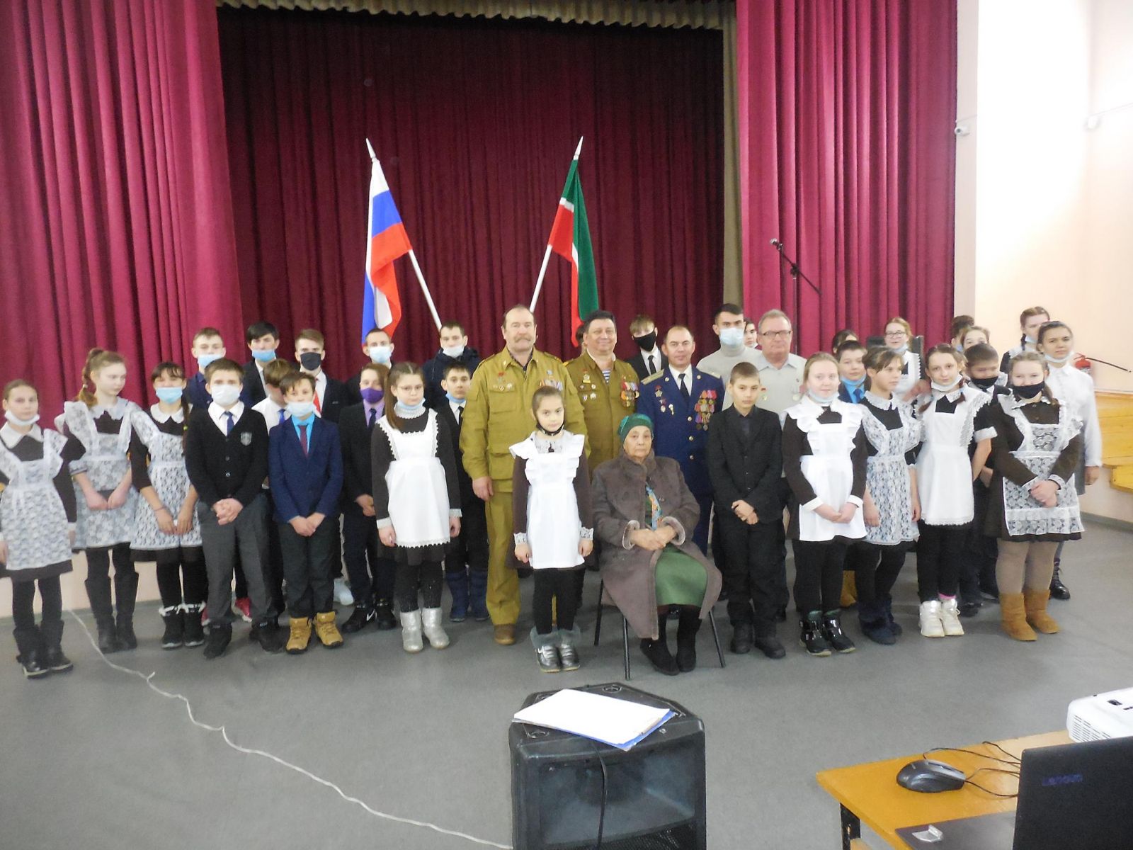 В канун памятной даты, дня памяти о россиянах, исполнявших служебный долг за пределами Отечества, учащиеся школы побывали в соседней д. Петровка на встрече с Фатымой Галимовной Газизовой, мамой Эрика Газизова, который погиб от ран, полученных при выполнении боевого задания в республике Афганистан. Как было трудно и тяжело воевать и выживать в далекой стране ребятам рассказали представители общественной организации ветеранов «Боевое братство». Ученики ознакомились с экспонатами комнаты боевой славы, посвященной земляку-герою, награжденному орденом Красной Звезды посмертно.