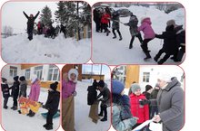 Ученики 1-4 классов приняли участие в конкурсно-игровой программе «Непоседа я от деда». Две команды – «Победа» и «Защитники» – соревновались на ловкость, быстроту, смекалку, силу в эстафетах «След в след», «Быстрые санки», «Рисунки на снегу», «Богатырская сила», «Маленький всадник». Работники СДК, организаторы весёлых игры на свежем воздухе, помогли ребятам не только согреться на морозе, но и поднять настроение, и укрепить здоровье.