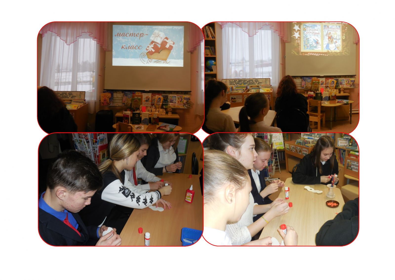 Скоро Новый год! Каждый по-своему любит этот праздник. Приятные хлопоты. Встреча с друзьями. Посиделки за столом. Просмотры новогодних фильмов. Чтение любимой книги. Сельский библиотекарь провела обзор литературы, повествующей о традициях, символах и легендах Нового года, а также создающее новогоднее сказочное настроение. Кроме этого, ученики 1-7 классов смастерили своим родным новогодние открытки с образом деда Мороза – символом добра, счастья, волшебства и исполнения желаний.