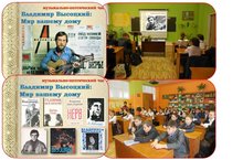 Учеников 6-9 классов сельский библиотекарь пригласила на музыкально-литературную композицию «Мир вашему дому» приуроченную к 80-летию со дня рождения поэта, актёра,барда Владимира Высоцкого. К его песням можно относиться по-разному. Можно любить или не любить. Принимать или отвергать. Долго спорить о них тоже можно. Но мимо песен Высоцкого нельзя пройти. Песни эти заметны, слышны. Песни были не только продолжением его дыхания, в них продолжалась его сердцебиение, грохотал пульс, распахивалась душа. Затаив дыхание, слушали ребята фрагменты записейпесен Высоцкого, чувствуя в них добрую силу и надёжность.