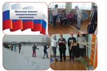 В рамках месячника мероприятий по военно-патриотическому воспитанию в школе прошли соревнования по спортивнымвидам: подтягивание из виса на высокой перекладине, подтягивание из виса лежа на низкой перекладине, наклон вперёд из положения стоя с прямыми ногами на полу, прыжки в длину с места толчком двумя ногами, поднимание туловища из положения лёжа на спине, бег на лыжах на 3 км. Участники соревнований показали свою сноровку, выносливость, силу и ловкость.