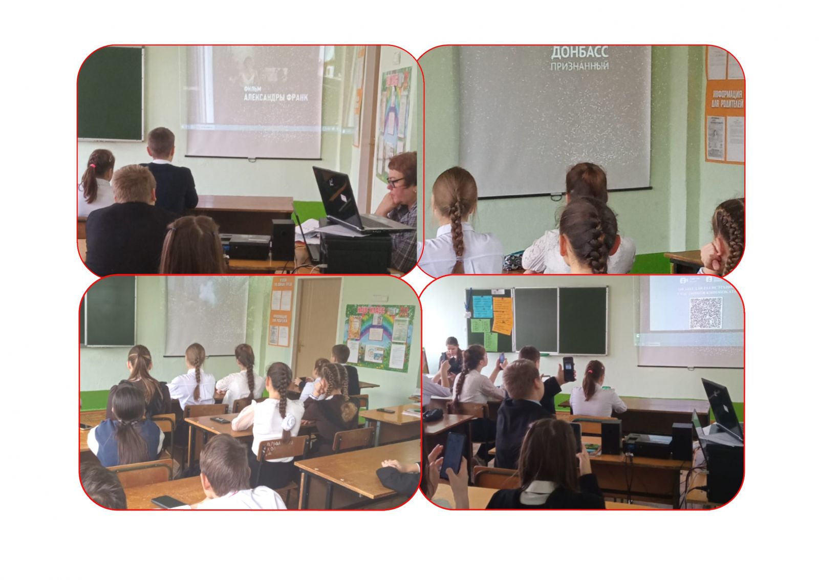В рамках проекта «Знание.Кино» в школе прошел показ кинолент для детей «Где проходит граница?», «Донбасс. Признанный», «Герои среди нас. Марьяна Наумова», посвященных воссоединению исторических русских территорий. Герои фильмов — люди, чьи жизни были затронуты историческими потрясениями. Кинокартины рассказывают о том, что они пережили и какие ценности лежат в основе их единства.