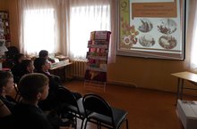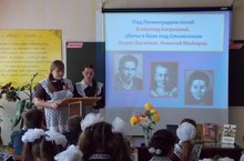 8 мая для учащихся школы была показана литературно-музыкальная композиция «Стихи, рожденные войной», подготовленная учителем литературы И.Ф.Мутагировой. Ведущие (С.Осипова и А.Александрова, ученицы 9 класса) рассказали о поэтах-фронтовиках: А.Твардовском, К.Симонове, Д.Самойлове, М.Джалиле, С.Гудзенко … Присутствующие узнали, что фронтовые поэты – это в первую очередь солдаты, перенесшие все тяготы и смотревшие смерти в глаза. В их стихах – рассказы о сражениях Великой Отечественной войны, о подвиге народа, о страданиях, которые вынес на своих плечах российский народ в военное и послевоенное время.
