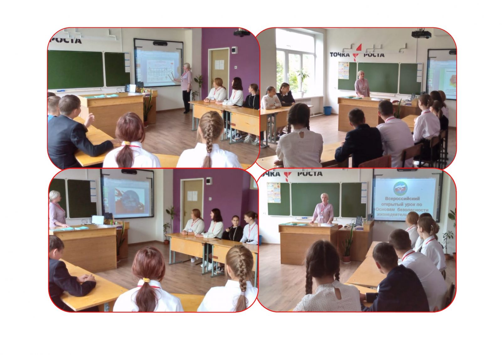 В школе прошел Всероссийский урок ОБЖ с целью получения обучающимися дополнительных теоретических знаний и практических навыков по безопасному поведению в повседневной жизни и при угрозе возникновении чрезвычайных ситуаций. Педагог ОБЖ рассказала ребятам о том, как предотвратить различные опасные ситуации, при природных стихийных бедствиях, правилах безопасности в быту, правилах поведения на дороге.