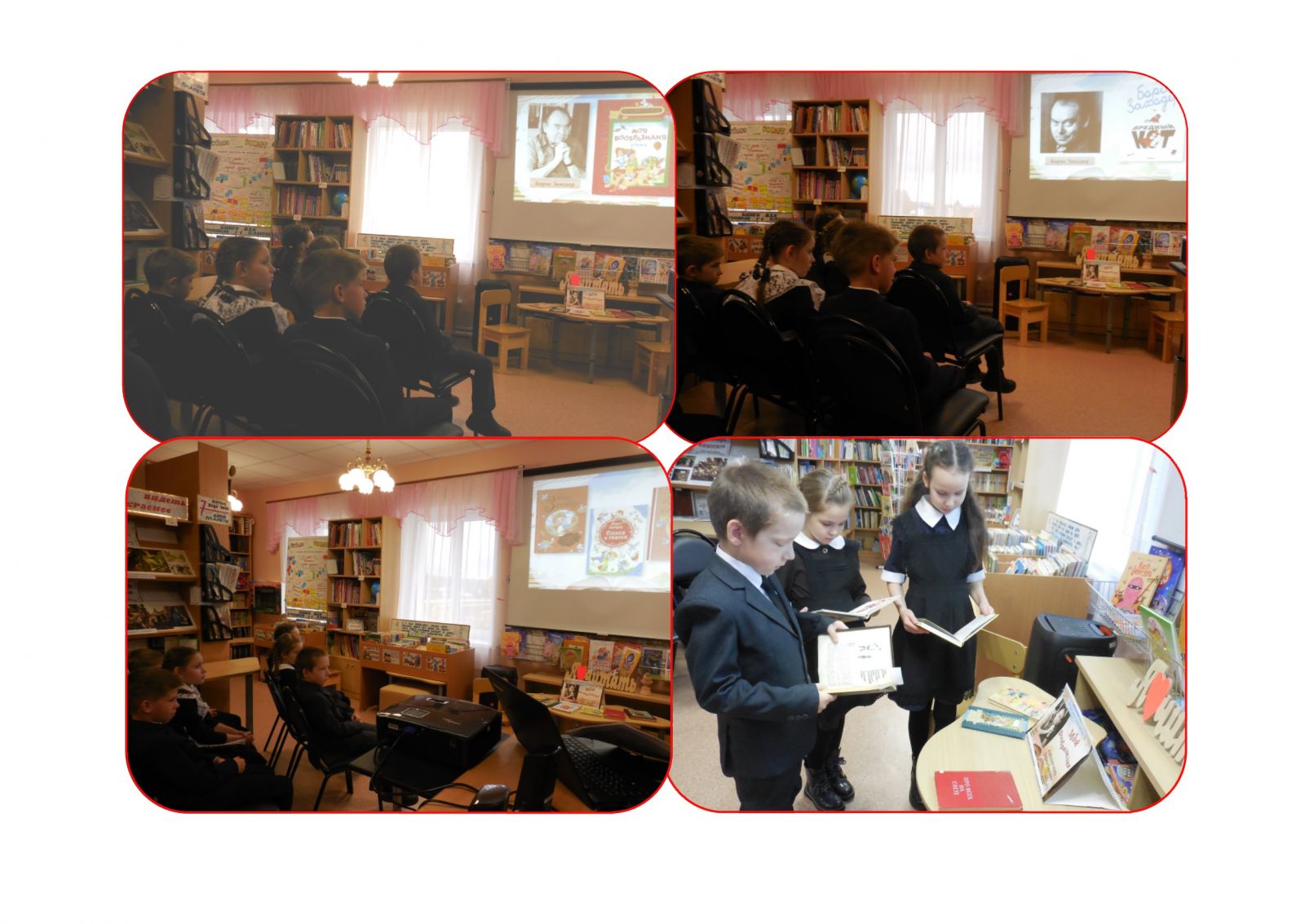 В сельскую библиотеку учащиеся 1-4 классов были приглашены на увлекательное мероприятие, которое проходило в форме литературного знакомства «Моя Вообразилия». Ребята узнали интересные факты из жизни поэта-юбиляра Бориса Заходера, прошлись по его радуге загадок, учились подбирать рифму к стихам, отвечали на вопросы интерактивной викторины «Гдетотам» по произведениям автора, отгадывали кроссворд. Мероприятие сопровождалось демонстрацией слайдов, обзором выставки «Он писатель-излучатель, новых слов изобретатель!» с книгами Бориса Заходера. В заключение посмотрели фрагмент мультфильма «Винни Пух и идет в гости»