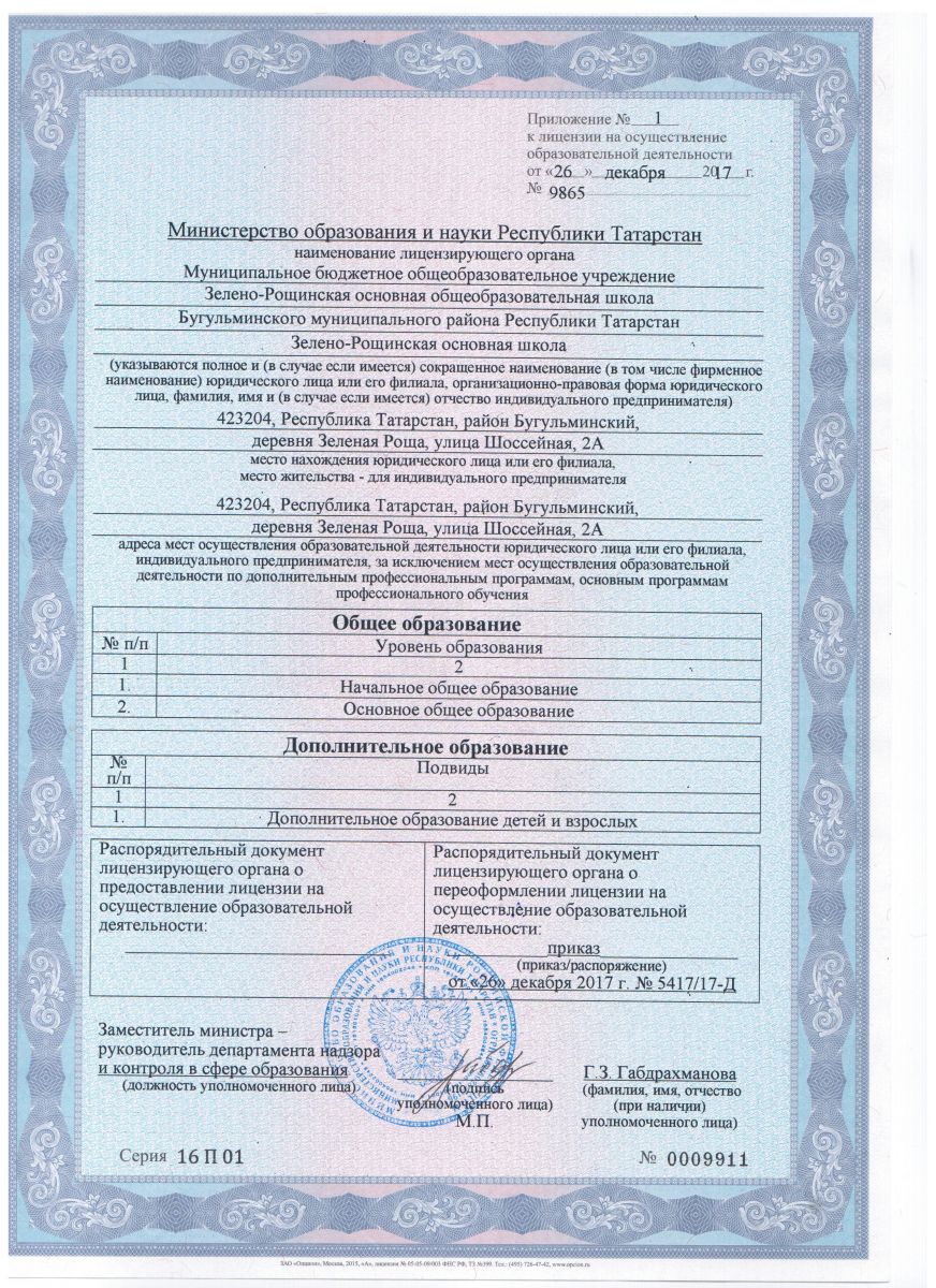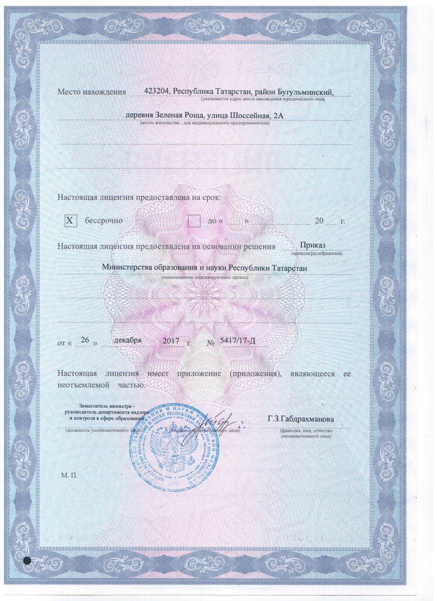 | Адрес: | 423230, РТ, Бугульминский район, д. Зеленая Роща, ул. Шоссейная, д. 2А |