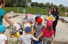 Безопасность детей на дорогах – это актуальная тема в любой период времени года. Ежегодно на наших дорогах совершаются десятки тысяч дорожно-транспортных происшествий с участием детей. Дети в силу своих возрастных особенностей не всегда способны правильно оценить дорожную ситуацию и распознать опасность. Задача педагогов и родителей – воспитать из сегодняшних дошкольников грамотных и дисциплинированных участников дорожного движения. Обучение детей правильному поведению на дорогах необходимо начинать с раннего возраста. Перед ребятами выступил инспектор ОГИБДД ОМВД России по Буинскому району, Черняев Евгений Анатольевич, на тему «Правила безопасного поведения на улице и дороге» по предупреждению детского дорожно-транспортного травматизма в летне-осенний период… В конце беседы он подарил светоотражатели на одежду.