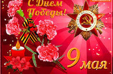 Праздник радостный и светлыйОтмечает вся страна.Пусть всем мирно солнце светитМиру не нужна война.С Днем Победы всех поздравим,Слава павшим и живым.Подвиг ваш великий славимИ «спасибо» говорим. -