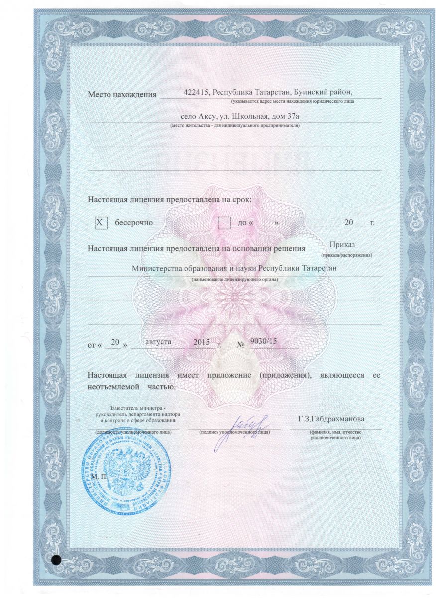 Адрес: 422415, Республика Татарстан, Буинский район, с. Аксу, ул.Школьная, 37а