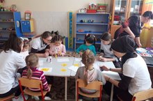 В рамках акции «Подари чудо» учащиеся 9 класса-смс-отряд занимались с детьми детского сада. Они вместе с ними рисовали рисунки и смайлики. Таким образом они сделали счастливыми детей, потому что детям очень понравилось это занятие. Они со своими руками совершили чудо. Получились красивые рисунки и смайлики. Будьте счастливыми и здоровыми, дети!