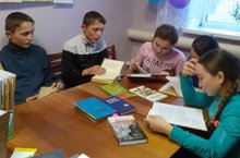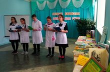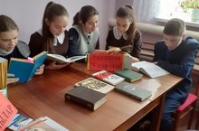 8 нче сыйныф укучылары, “Җиңүнең 75 еллыгына 75 әсәр уку” акциясенә кушылып, библиотекада сугыш темасына язылган әсәрләр укыйлар.