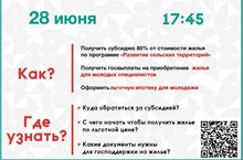 Буинский муниципальный район сообщает, что Министерством молодежи Республики Татарстан в рамках мероприятий Всероссийского Дня молодежи, в целях повышения эффективности информирования молодежи о действующих в Татарстане программах и мерах государственной поддержки молодых семей, молодых специалистов в улучшении жилищных условий 28 июня 2021 года в 17.45 проводится второй прямой эфир #ЖильёМолодымРТ. В программе прямого эфира (на площадках Исполнительного комитета Буинского муниципального района, zoom, YouTube) в доступной и подробной форме будут представлены действующие в Татарстане программы министерств и ведомств различных отраслей, направленные на государственную поддержку молодежи в приобретении собственного жилья, в том числе по программе развития сельских территорий, поддержки молодых врачей и учителей, специалистов по работе с молодежью, а также цифровизации и упрощения процедуры постановки на учет для улучшения жилищных условий.