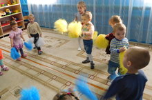 Цель: научить детей отщипывать маленькие кусочки пластилина от большого куска и скатывать шарики между ладонями;развивать мелкую моторику пальцев рук, воспитывать аккуратность.