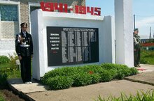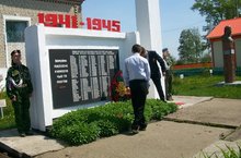 Члены отряда профилактики правонарушений возложили венок в честь погибших солдат в Великую Отечественную войну к памятнику воинам - односельчанам.