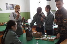 Напоследок ученики попробовали продукты питания из индивидуального суточного пайка воина №4.